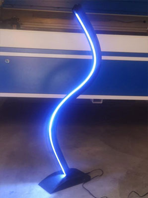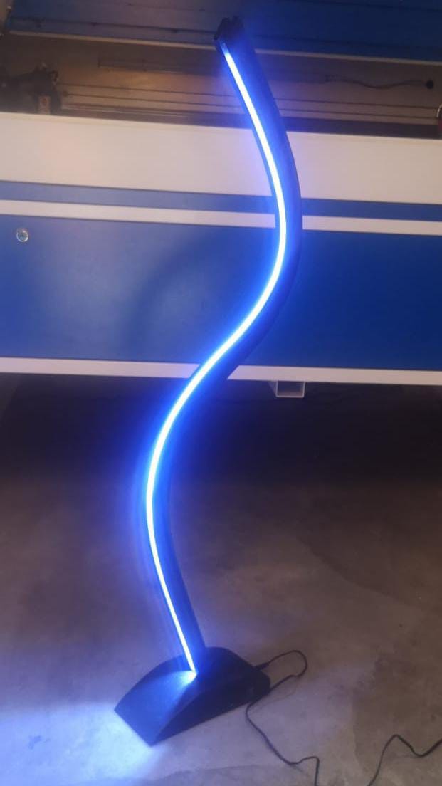 Lámpara elaborada en base a madera curva y luces LED, con alta iluminación. Ideal para decorar espacios interiores.